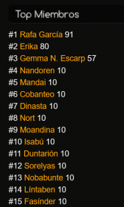 Por otro lado, seguidamente de la insignia y puntos que tienes encontraras un Top 20 de los miembros registrados con mayor puntuación que esperamos que incentive la competición sana.