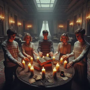 Las paredes parecen susurrar, y ecos de risas maliciosas resuenan en el aire, tratando de confundirlos. Cada paso que dan está plagado de visiones aterradoras de sus propios miedos, pero con determinación, continúan adelante. Finalmente, encuentran un antiguo altar en el centro de una sala, adornado con símbolos de poder oscuro. Allí, en la cúspide del altar, está el libro, aunque no es el mismo que conocieron. Ahora está envuelto en sombras, con páginas desgastadas que brillan con un oscuro resplandor.