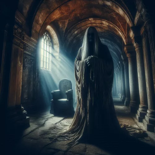 El espíritu, una figura vestida con ropajes antiguos, emana una tristeza profunda. Con voz resonante, explica que fue el guardián de la mansión, atrapado por la maldición que ahora amenaza a los protagonistas. Su energía ha estado siendo drenada, lo que ha permitido que la maldición se fortalezca. Sin embargo, ahora que el círculo ha sido destruido, el espíritu está libre, aunque a un alto costo.