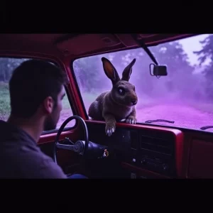 —¡Me cago en la puta! —Por el retrovisor veía a la liebre empequeñeciéndose y dando saltitos sobre el asfalto— ¡La cena casi me arranca la cara a mordiscos!